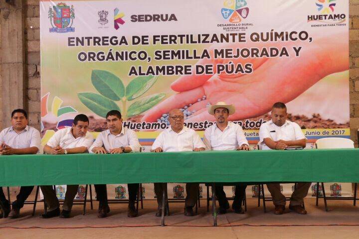 Para mejorar la productividad del campo y con ello, contribuir al desarrollo y bienestar de las familias que dependen de esta actividad en Huetamo, el presidente municipal provisional, Gilberto Zarco Saucedo, hizo entrega de fertilizantes químico como orgánico, semilla mejorada y alambre de púas.