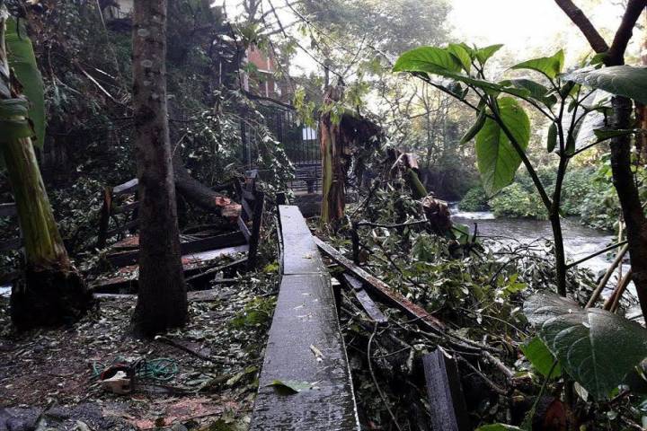 Un antiquísimo árbol de aguacate criollo, se vino abajo la tarde del domingo pasado, previo al inicio de la lluvia, cayendo sobre el puente de madera que une el Parque Nacional con el Parque Lineal, junto a la cascada La Camelina; un grupo de turistas alcanzó a ponerse a salvo y solamente dos sufrieron algunas lesiones superficiales.