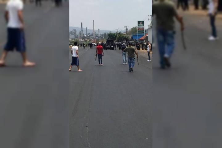Este jueves un numeroso grupo de manifestantes cerró la carretera en la población de Santa Clara para evitar la salida de elementos de la Policía Michoacán, quienes habían detenido a dos hombres, señalados de actos ilícitos.