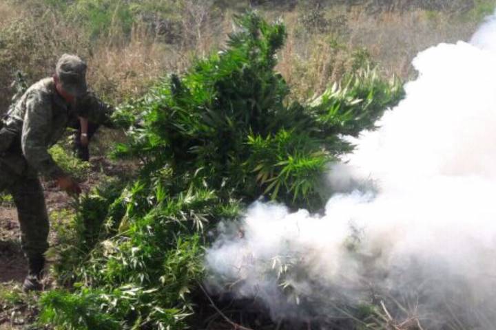 Un plantío de marihuana fue localizado y destruido por los elementos de la 43 Zona Militar en coordinación con los oficiales de la Policía Michoacán, todo ello en el combate permanente contra la delincuencia.