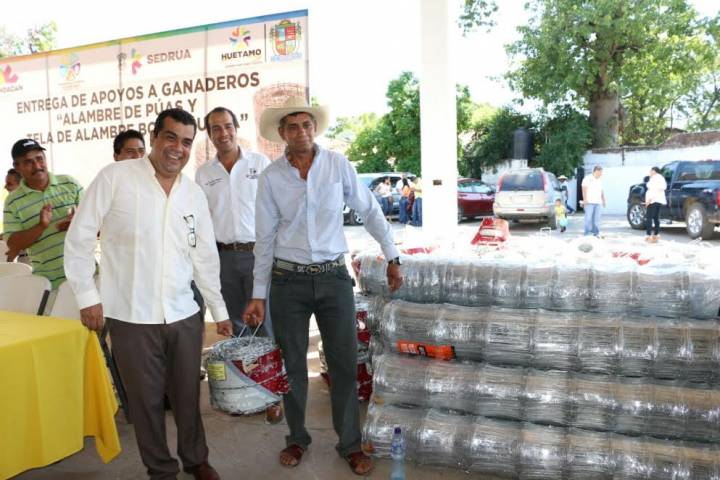 Con el objetivo de continuar apoyando a los productores y campesinos de Huetamo, el presidente municipal Elías Ibarra Torres en vinculación con las autoridades estatales, hizo entrega de más un millón de pesos, a los afectados con las sequías y entregó alambre de púas y malla borreguera.