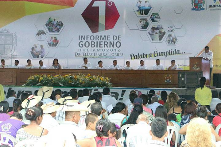 NOTICIAS 14/08/2016Rinde ElÃas Ibarra Primer Informe de Gobierno MunicipalAnte la presencia de más de 4 mil huetamenses, el presidente municipal ElÃas Ibarra Torres rindió su primer informe de Gobierno Municipal, durante la sesión solmene, en donde el alcalde resaltó el compromiso de su administración para redoblar esfuerzos para continuar dotando del desarrollo y bienestar a la población.