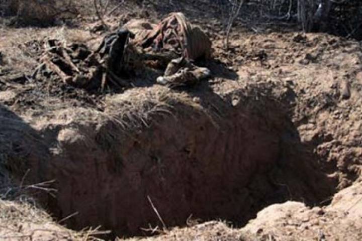Parcialmente enterrado en una fosa clandestina fue encontrado un cadáver masculino, al cual se le apreció un impacto de bala, indicaron las autoridades, las cuales agregaron que la mencionada tumba estaba dentro de una cañada cercana a la ranchería La Haciendita, correspondiente a la región de Aguililla.