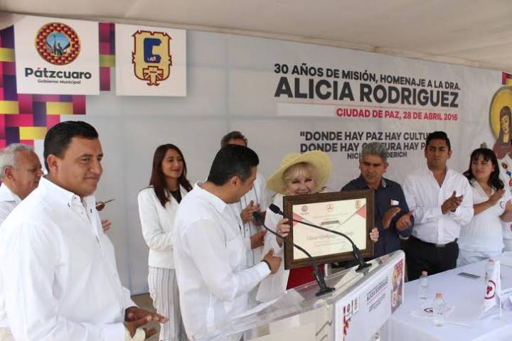 NOTICIAS 28/04/2016Reconocen los 30 años de Alicia rodríguez promoviendo la Bandera de la PazEl Ayuntamiento de Pátzcuaro reconoció a Alicia Rodríguez Fernández por los 30 años que viene promoviendo la Bandera de la Paz por distintas ciudades del mundo.