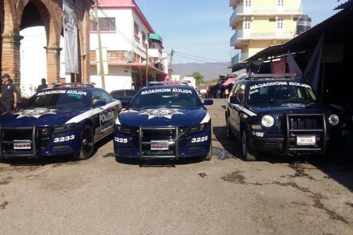 Autoridades de Gobierno del Estado y del Ayuntamiento de Huetamo, hicieron la mañana de este jueves, entrega de tres patrullas equipadas y uniformes a los elementos de la Policía Michoacán de esta demarcación.
