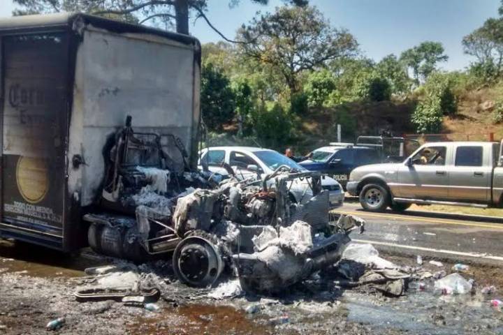 Individuos armados quemaron un camión repartidor de la empresa cervecera Corona, el cual interceptaron en la carretera libre Uruapan - Pátzcuaro, en esta demarcación, trascendió en la labor reporteril.
