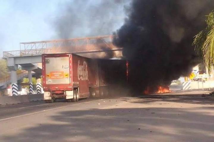 Un camión de la empresa refresquera Coca Cola fue incendiado por individuos armados, el hecho se registró la tarde-noche de este miércoles, en la carretera Apatzingán-Cuatro Caminos, a la altura de la población de San Antonio La Labor, en esta demarcación. Suman tres vehículos los siniestrados este día por sujetos vinculados con el grupo delictivo denominado Los Viagras, indicaron fuentes oficiales.