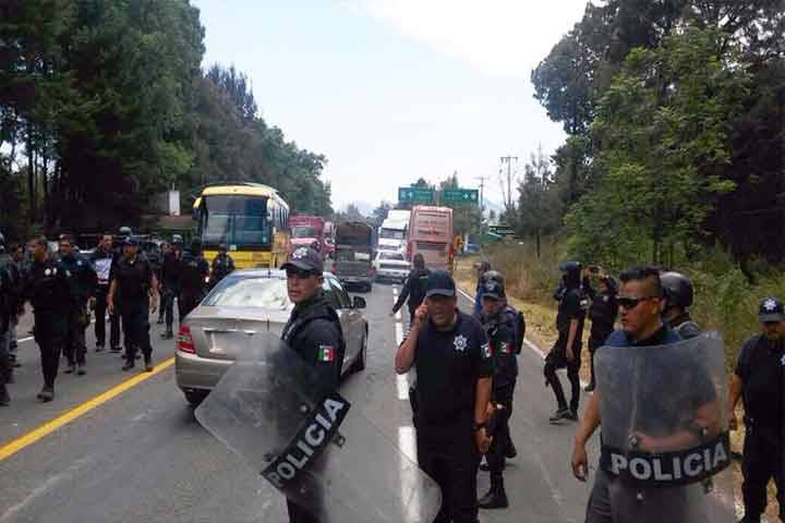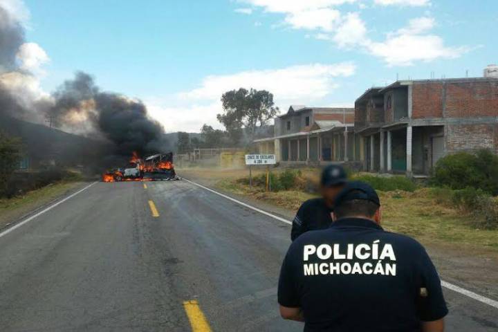 Elementos de la Policía Michoacán liberaron esta arteria luego de que habitantes de esta localidad la mantuvieran cerrada durante varias horas, para lo que incluso utilizaron un vehículo al que posteriormente prendieron fuego.