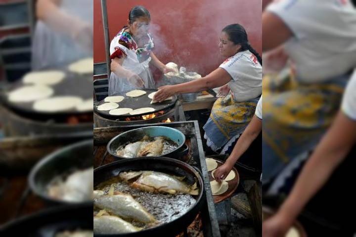 Cocineras provenientes de 16 comunidades indígenas de la Meseta Purhépecha, prepararon una gran diversidad de alimentos a la usanza tradicional, platillos que fueron degustados por cientos de visitantes en lo que fue la muestra gastronómica, en el marco del Tianguis Artesanal de Domingo de Ramos.