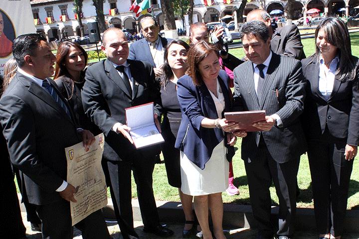 NOTICIAS 14/03/2016Refrendan hermanamiento Pátzcuaro-MadrigalEn el marco de actividades por el CDLI Aniversario Luctuoso de Don Vasco de Quiroga, Víctor Manuel Báez Ceja, presidente municipal, entregó las llaves de la ciudad a la alcaldesa de Madrigal de Las Altas Torres, Ana Isabel Zurdo Manso, con las que se le reconoce como visitante distinguida.