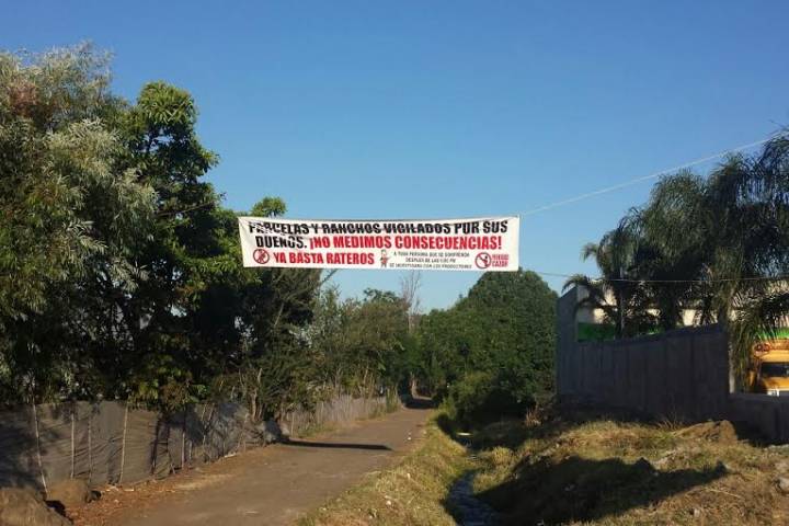 En una manta colocada en el camino rural de Las Zirandas, cerca de la carretera que va hacia la Tenencia de San Sebastián, en esta demarcación de Los Reyes, los campesinos productores de caña y de diversas frutas lanzaron una advertencia contra los ladrones: "¡No mediremos las consecuencias!", afirman ante el hartazgo que dicen tener por los constantes robos.