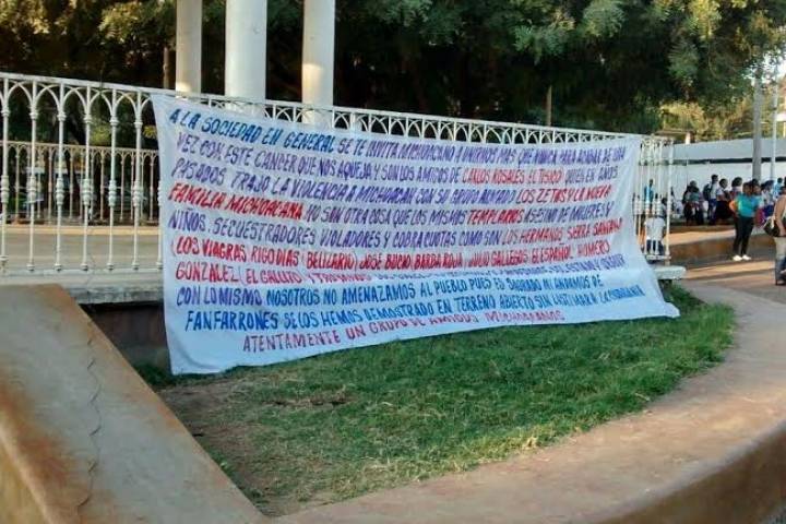 Otra vez aparecieron mantas en Michoacán, fueron dos, una dejada en la demarcación de Lázaro Cárdenas, en especÃfico, en el kiosco de la plaza de la Tenencia de La Mira y otra en un puente peatonal de la ciudad de Nueva Italia, en Múgica. Estaban firmadas por "Los Amigo Michoacanos", quienes dirigieron un mensaje en contra de "Los Viagras", los rótulos fueron retirados por los elementos del Ejército Mexicano. Muchas personas se detuvier... Ver más...