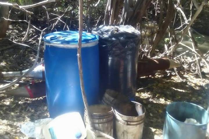 Dos narcococinas fueron localizadas y destruidas por los elementos del Ejército Mexicano y de la Policía Federal, en un reciente operativo que se desencadenó luego de una denuncia ciudadana, en la que reportaban que había presencia de vehículos sospechosos en la ranchería Lateral Mocho, también conocida como El Rápido, en esta demarcación.