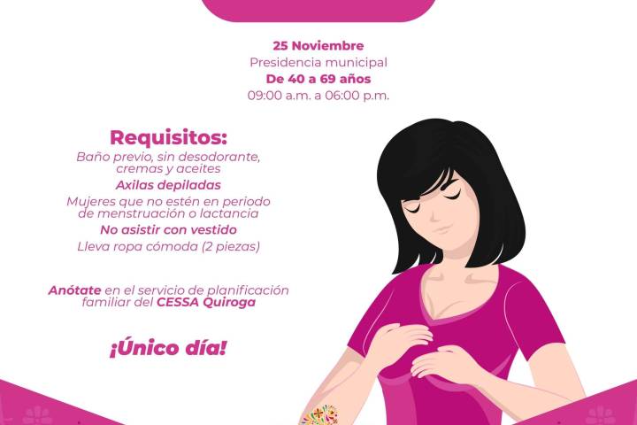 NOTICIAS 15/11/2024Quiroga llevará a cabo jornada de mastografías gratuitas para mujeres de 40 a 69 añosEl Gobierno de Quiroga, a través del Centro de Salud de Servicios Ampliados (CESSA), llevará a cabo la toma de mastografías, por único día, con el objetivo de promover la detección temprana del cáncer de mama y ofrecer acceso a este estudio preventivo a las mujeres que residen en la localidad.