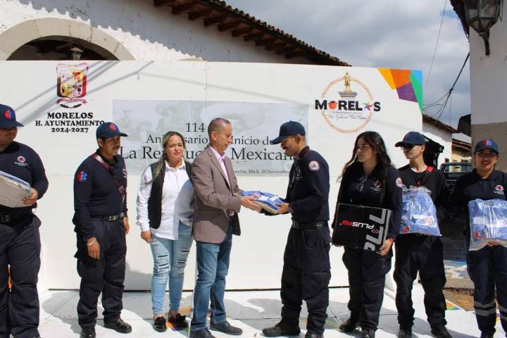 NOTICIAS 21/11/2024Entrega Conejo Alejos uniformes a Protección Civil Municipal En el marco de la celebración del 114 Aniversario de la Revolución Mexicana, el Ayuntamiento de Morelos llevó a cabo la dotación de uniformes a las y los integrantes de Protección Civil Municipal.
