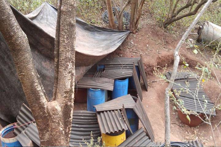 Un laboratorio clandestino empleado para la fabricación de droga sintética fue localizado y desmantelado por los elementos del Ejército Mexicano, quienes hacían un recorrido dentro del programa habitual de combate al narcotráfico.
