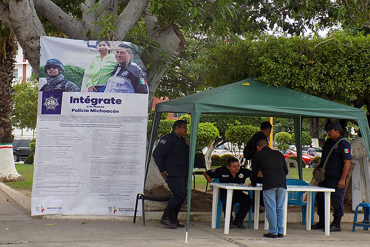 Con el objetivo de invitar a la población a integrarse a la Nueva Policía Michoacán, el Gobierno Municipal de Lázaro Cárdenas, a través de la Comandancia de Policía local instaló un módulo de información ubicado en la explanada municipal con horario de 8:00 a 16:00 horas de lunes a viernes, donde se atiende a los interesados en formar parte de la Policía.