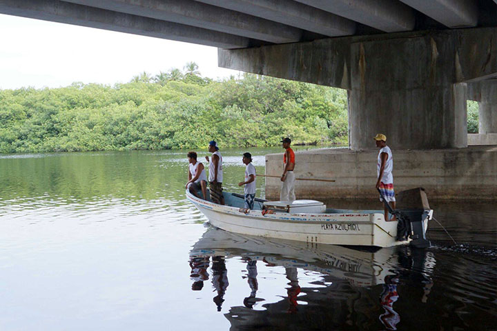 Gracias a la inmediata respuesta de los salvavidas de Protección Civil, se logró rescatar sano y salvo a un menor de edad que cayó desde el puente de barra de Santana a las aguas del estero infestado de cocodrilos.