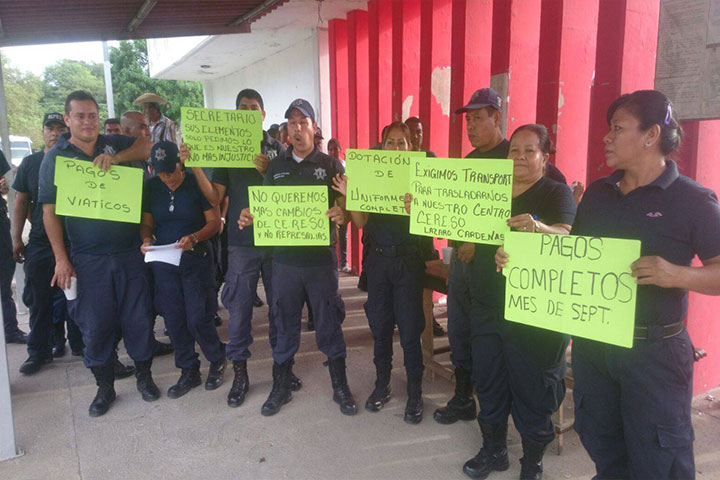 Ante la falta de pagos de diversas compensaciones, los custodios del Centro de Reinserción Social de Lázaro Cárdenas se manifestaron a las afueras de dicha cárcel la mañana de este jueves, además de que no permitieron el acceso al personal administrativo, justamente por la inconformidad que expresaron tener.