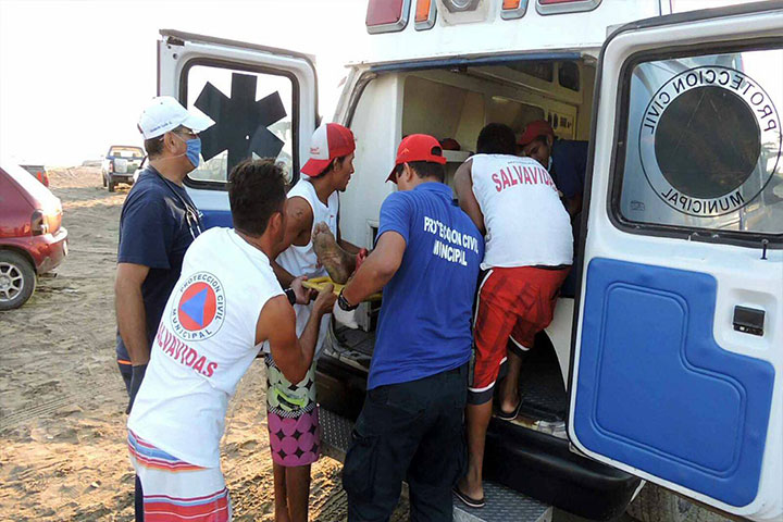 Un hombre ignoró las recomendaciones de los salvavidas de Barra de Santa Ana (en este municipio) que le prohibieron entrar al habitad de los cocodrilos para pescar y al ingresar a la zona fue atacado por un reptil que le desgarró una de sus piernas, el herido fue rescatado y trasladado a un hospital local, donde su estado de salud es reportado como grave.