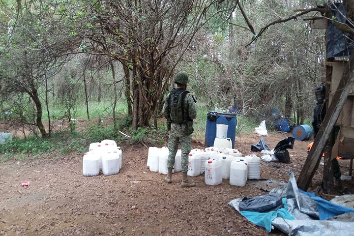 Dos presuntos infractores e igual número de armas de fuego y varios precursores químicos, fueron localizados y asegurados en un narcolaboratorio que elementos de la 21 Zona Militar descubrieron tras un recorrido realizado en un área boscosa de la comunidad de Paratasco, correspondiente a este municipio de Peribán.