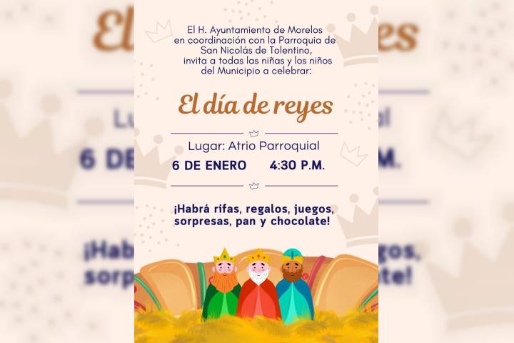 El Ayuntamiento de Morelos, en coordinación con la Parroquia de San Nicolás de Tolentino, invita a todas las niñas y los niños del municipio a celebrar el tradicional Día de Reyes, una festividad que forma parte del arraigo cultural y religioso de la comunidad. En ese sentido, el presidente municipal, Julio César Conejo Alejos, informó que esta celebración se llevará a cabo el próximo 6 de enero, a partir de las 4:30 de la tarde, en ...
