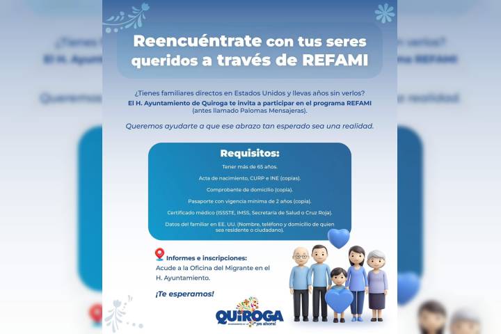 La presidenta municipal de Quiroga, Alma Mireya González Sánchez, informó que el municipio dio inicio al año 2026 impulsando acciones de alto impacto social, al poner en marcha el programa REFAMI, anteriormente conocido como Palomas Mensajeras, con el objetivo de fortalecer la reunificación familiar y atender una de las necesidades más sentidas de la población migrante. En ese sentido, destacó que, a través del Ayuntamiento de Quiro...