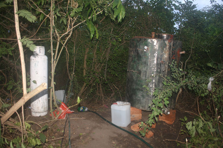 Gracias a las constantes labores de vigilancia que mantiene el personal castrense en la tierra caliente michoacana, la tarde de este viernes se logró desmantelar un narcolaboratorio y detener a cinco presuntos "cocineros", en este municipio de Buenavista.