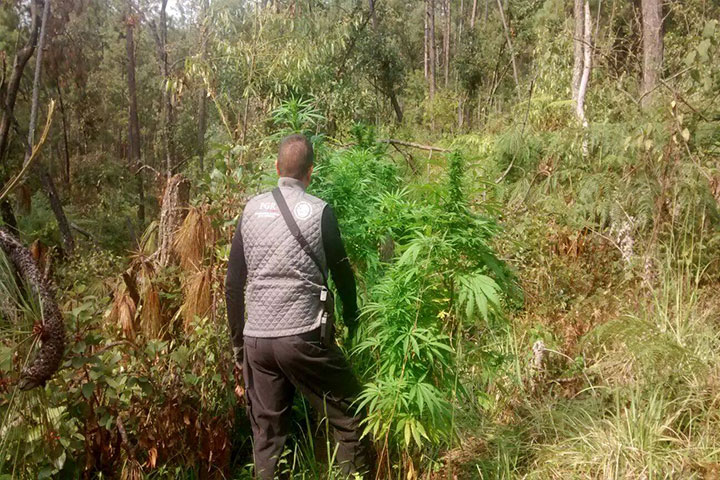 El propietario de un terreno reportó a las autoridades federales que su propiedad había sido invadida con un plantío de marihuana, mismo que tenía una extensión de 300 metros cuadrados.
