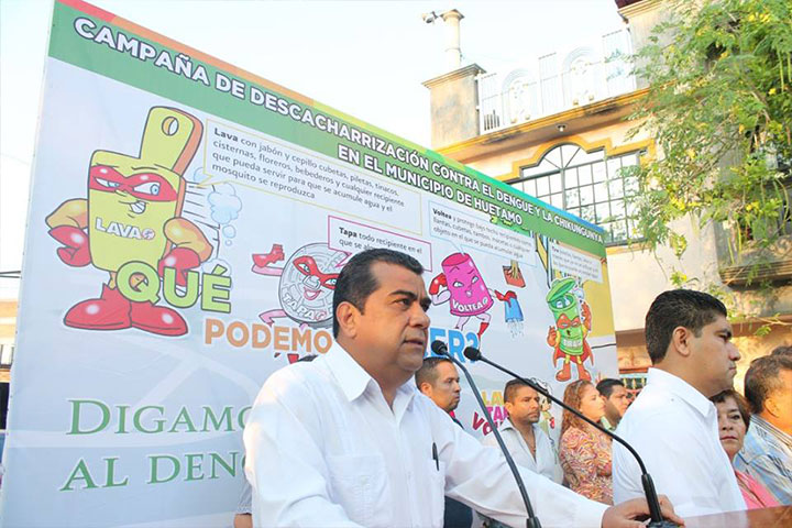 El presidente municipal de Huetamo, Elías Ibarra Torres y los integrantes del cabildo, dieron arranque al operativo para prevenir y erradicar la chikungunya y dengue, acto en el que participó Héctor Enrique Morales Cerda Jefe de la Jurisdicción Sanitaria número tres de Zitácuaro y el director del IMSS Prospera, Rubén Arrañaga.