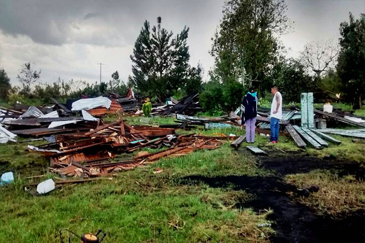 Durante la tormenta que azotó la tarde de este jueves a la altura del viejo San Juan, en la zona volcánica, se formó una culebra de agua que causó considerables daños a trojes, viviendas, una galera y en plantaciones de aguacates. Autoridades municipales y de la mesa directiva de la comunidad indígena de Nuevo San Juan Parangaricutiro, evalúan los daños.