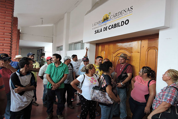 Por al menos seis horas los empleados de la Tesorería Municipal estuvieron retenidos por otros trabajadores del Ayuntamiento local, quienes exigían les pagaran la quincena pasada.