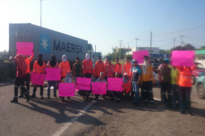 Trabajadores de los Contenedores se manifestaron la mañana de este lunes en la Isla Cayacal, de este puerto, exigieron prestaciones, días de descanso y que se cumplan jornadas laborales de 16 horas.