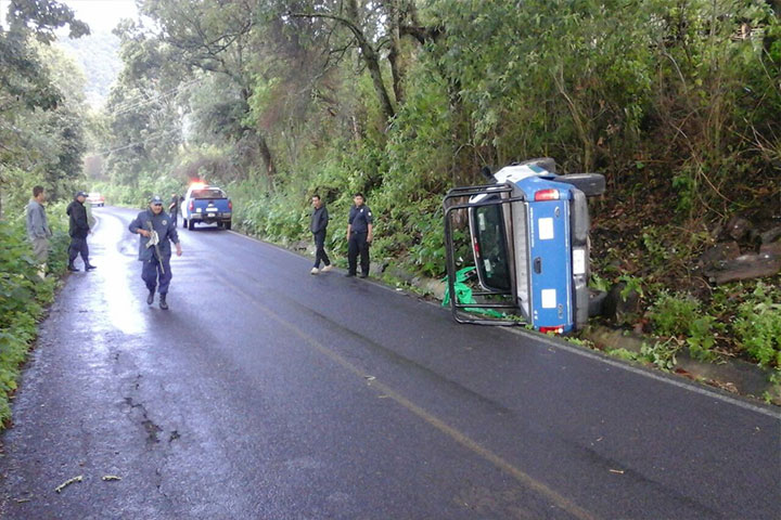 Tres policías del Mando Unificado (MU) de Tzitzio resultaron con heridas leves, después de que la patrulla en la que se trasladaban volcara al ser chocada por detrás por otra unidad que se dio a la fuga, según trascendió durante la cobertura noticiosa.