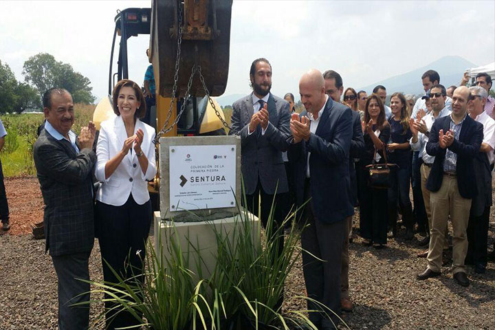 En representación de Salvador Jara Guerrero, gobernador del Estado de Michoacán, el secretario de Desarrollo Económico, Luis Gálvez Antúnez, asistió a la colocación de la primera piedra de "Sentura" Centro Comercial Zamora.