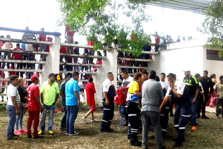 Dos aficionados al futbol resultaron lesionados, luego de que el respaldo de una de las gradas de la Unidad Deportiva "Hermanos López Rayón", se viniera abajo y los espectadores cayeran de una altura de tres metros aproximadamente, sufriendo lesiones de consideración; uno de ellos fue atendido en el lugar y otro más trasladado a un hospital.