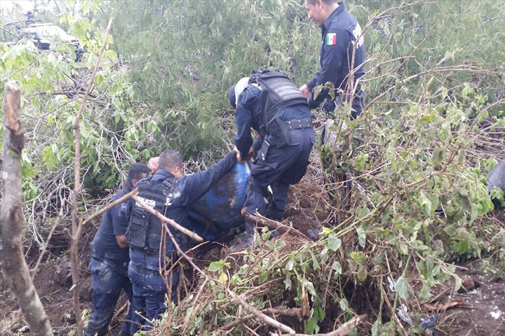Varios tambos que contenÃan sustancias quÃmicas desconocidas fueron halladas y desenterradas en un predio del rancho "Campo Atascoso", perteneciente a la comunidad de Corona, correspondiente a este municipio.