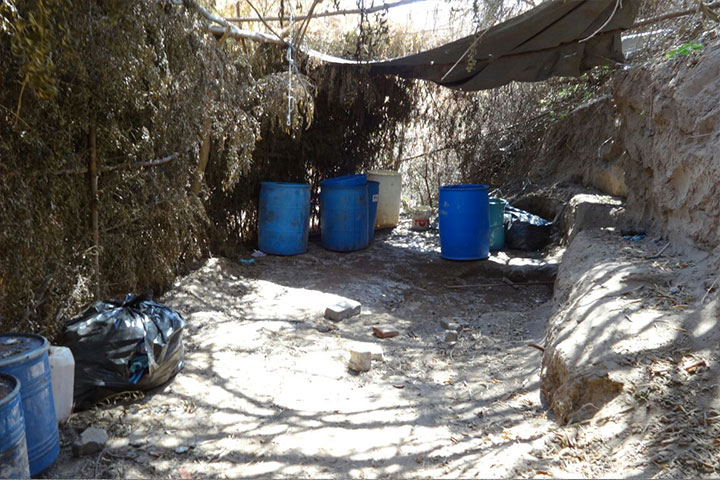 En una reciente movilización, el Ejército Mexicano destruyó dos narcolaboratorios más en esta región de la Tierra Caliente, ahora en este municipio de Parácuaro, uno de ellos ubicado a un costado de un camino rural y otro en una barranca, con lo cual la milicia lleva en lo que va del año al menos siete de estas narcococinas echadas abajo en esta zona de la entidad.