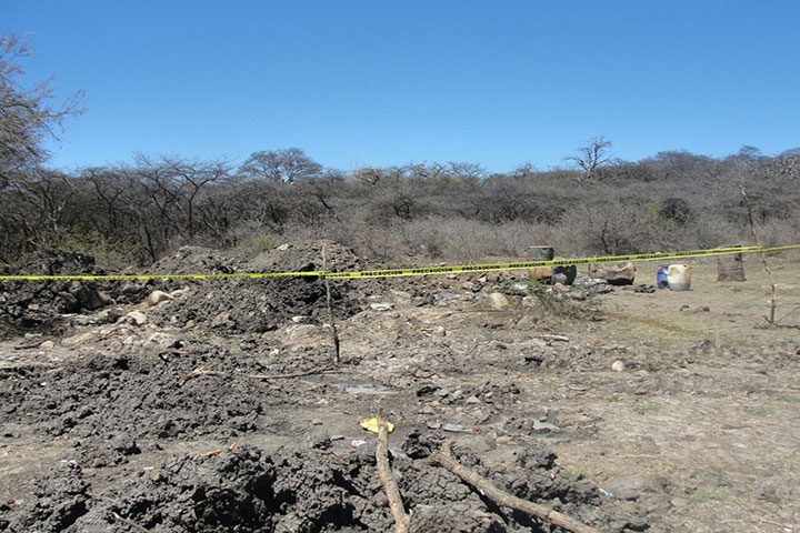 Una importante cantidad de químicos para la elaboración de drogas fue asegurado y confiscado por elementos de la Secretaría de la Defensa Nacional (Sedena), en la comunidad de San José de Vargas, perteneciente a esta localidad de Tanhuato, donde ubicaron un terreno donde se ocultaban varios tambos.