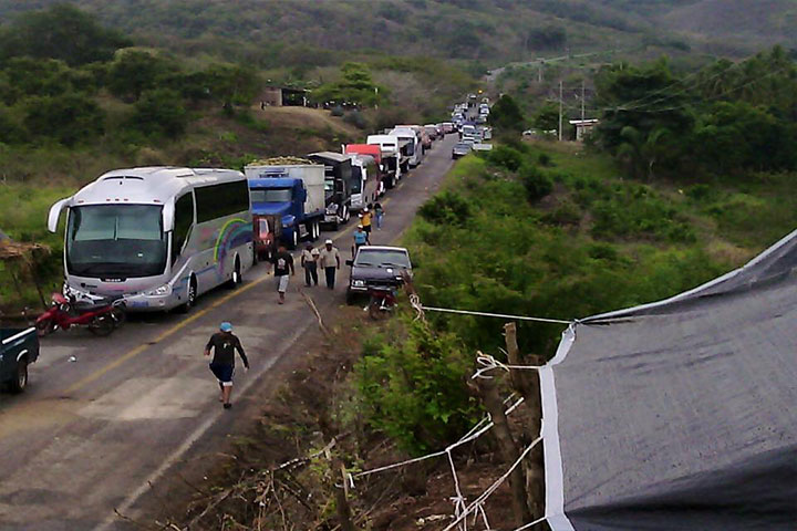 Policías comunitarios de Ostula bloquearon por aproximadamente 24 horas la carretera Lázaro Cárdenas - Manzanillo, a la altura de la comunidad de Xayajala, ubicada en este municipio de Aquila, esto para evitar el retiro de barricadas y el desarme de sus integrantes, a raíz del operativo permanente que hace en distintos puntos de la entidad el Grupo de Coordinación Michoacán (GCM).