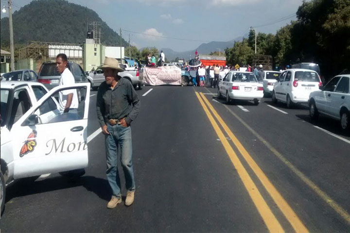 Doble bloqueo carretero. Por una parte, habitantes de la población de Cheranguerán, municipio de Uruapan, que demandan continúe la construcción de un dispensario médico, cuya obra fue suspendida el pasado sábado al parecer por una orden judicial. Por la otra, un grupo de los llamados autodefensas que mantienen una barricada en la carretera a Paracho, precisamente a la altura de la desviación a Cheranguerán.