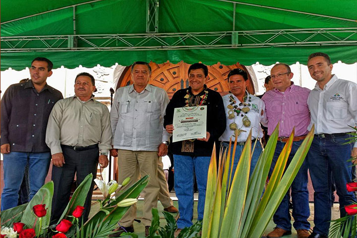 El presidente municipal de Tangancícuaro, Gustavo Zintzun; el jefe de tenencia de Patamban, Florencio Morales Tapia y el representante de Bienes Comunales, Benito Suárez González, entregaron esta localidad el Reconocimiento de Huésped Distinguido a Rafael Paz Vega, director general de la Casa de las Artesanías (Casart), en compañía de diputados del Congreso del Estado, autoridades del gobierno estatal y municipal.