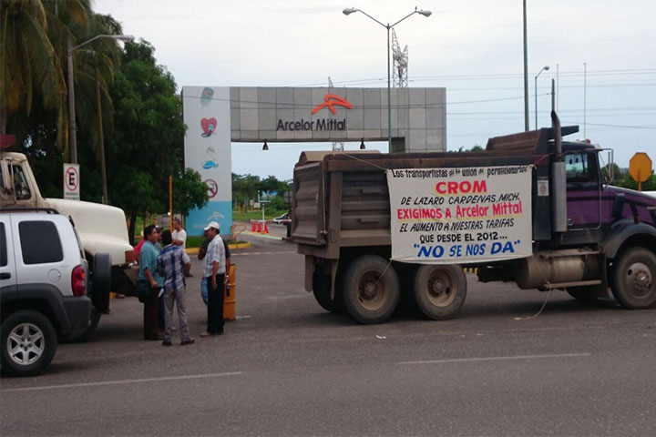Por segunda ocasión en una semana, más de 200 camioneros que ofrecen sus servicios a la empresa acerera ArcelorMittal, ubicada en este puerto, se plantaron afuera de la misma y amagaron con mantener ahí un bloqueo indefinido, si no se aumenta el pago que se les da por el traslado del mineral, refirieron.