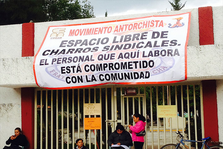 Profesores Antorchistas de Maravatío, se manifiestan en las afueras de la institución, esto ante las arbitrariedades en su contra por parte del sindicato del colegio de Bachilleres en el Estado, así lo mencionan los manifestantes.