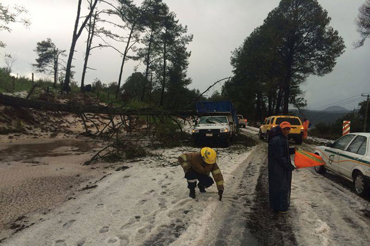 Una fuerte granizada que azotó la tarde de este miércoles los municipios de Pátzcuaro y de Ziracuaretiro dejó como resultado árboles y postes de energía eléctrica caídos, lo cual también mantuvo cerrado parcialmente un tramo de la autopista Siglo 21 por al menos dos horas, informaron las corporaciones de auxilio.