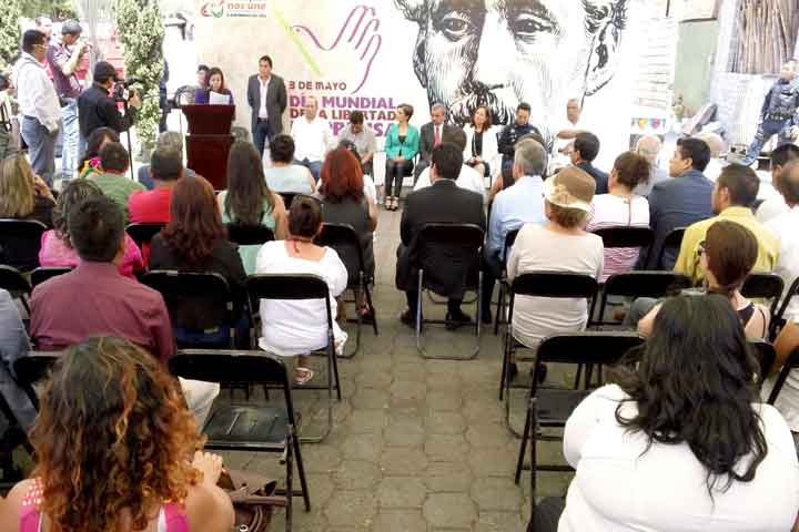 El 3 de mayo, se conmemora el Día Mundial de la Libertad de Prensa, decretado por la ONU en el año de 1993, y en Michoacán no es la excepción, aquí, desde Uruapan, hago un justo reconocimiento a la labor de los periodistas, dijo Ma. Guadalupe Santacruz Esquivel, directora de comunicación social y representante del gobernador fausto Vallejo Figueroa, en el acto conmemorativo.