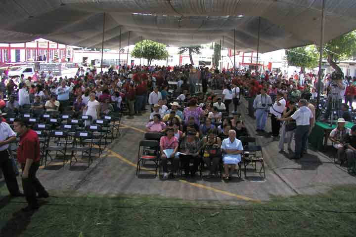 Luego de haber sostenido una importante reunión en Cherán, en la Meseta Purhépecha, el gobernador del estado, Fausto Vallejo Figueroa y el secretario de gobernación Miguel Ángel Osorio Chong, a punto está de iniciar aquí una reunión donde habrá de tomarles protesta a los comités de desarrollo social de este municipio.