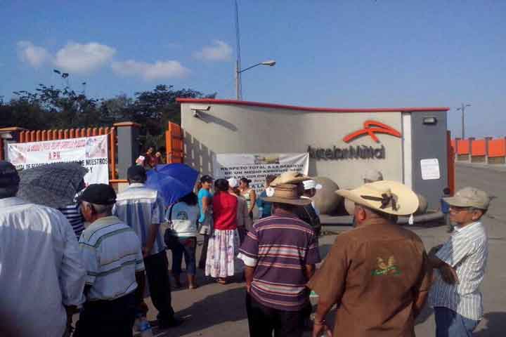 Enfadados colonos de la Tenencia La Mira, perteneciente a Lázaro Cárdenas, se manifestaron en la entrada principal a las minas para pedir a las autoridades de los tres órdenes de gobierno, así como a la empresa ArcelorMittal, cumplan con los acuerdos del enrocamiento del río Acalpican.
