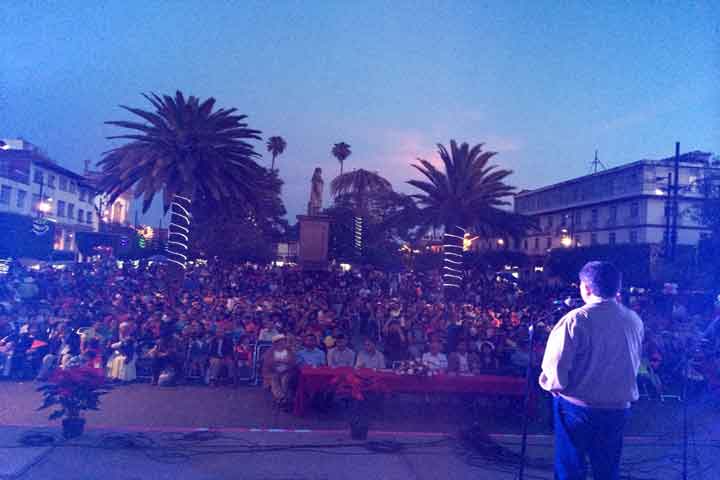 Con un gran evento político cultural que congregó a tres mil antorchistas en la Pérgola del centro histórico de Uruapan, Omar Carreón Abud y Rodolfo Lemus, dirigentes antorchistas, inauguraron simbólicamente la pavimentación de 14 calles en colonias pobres de Uruapan.