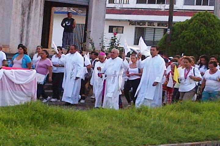 La peregrinación fue compartida también por sacerdotes, religiosas, grupos juveniles y laicos de todas las edades quienes, en caravana, partieron a las seis de la tarde de la Parroquia de Nuestra Señora del Carmen para llevar su mensaje de fe y esperanza a los templos d... Ver más...
